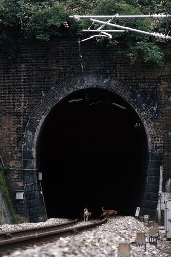 もしかすると以前にアップしたかもしれません。 あぶね~。 豊原→白坂 トンネルの中を歩いてはいけません。走ってもいけません。でもワンちゃんたちは、トンネルの中へ引き返して行きました。みんなで歩けば怖くない、って? 昭和57(1982)年10月11日
