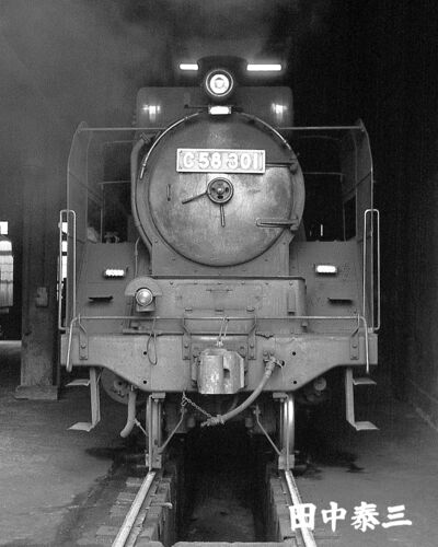 田中 泰三様とSAMPUKU爺様の画像につき、転載はご遠慮ください。 昭和43(1968)年10月4日 敦賀第一機関区 車歴は↓こちら。 C58301 機関車データベース (形式C58) - デゴイチよく走る! ナンバープレートが下寄りのふんがふんが顔。煙室扉ハンドルは丸穴タイ…